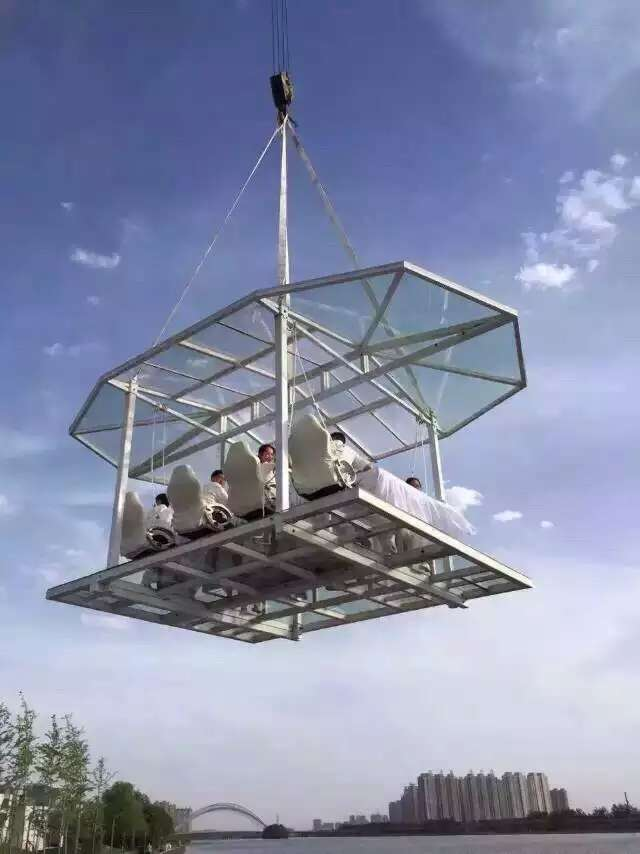 空中餐廳是能在高空就餐的餐廳。整個餐桌固定在金屬框架上,由一臺巨型起重機吊在30米左右高空。每次可接待8名顧客。除了享受美食之外,還可以俯瞰整個城市的美景。